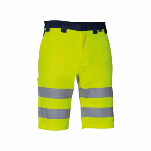 Bermuda AV Bejuma con 2 bande reflex, ampie tasche anteriori, doppia tasca posteriore di cui una con pattina, chiuse con velcro, passante portamartello, tasca portametro