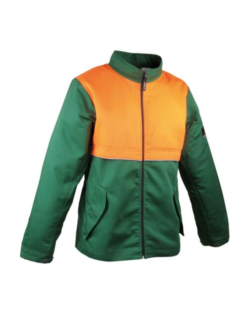 La giacca antitaglio Cofra Saw Brake è una giacca in colore verde e arancio, studiata per essere usata per: abbattimento degl’alberi, potatura, settore agricolo e forestale, sramatura, taglio della legna.