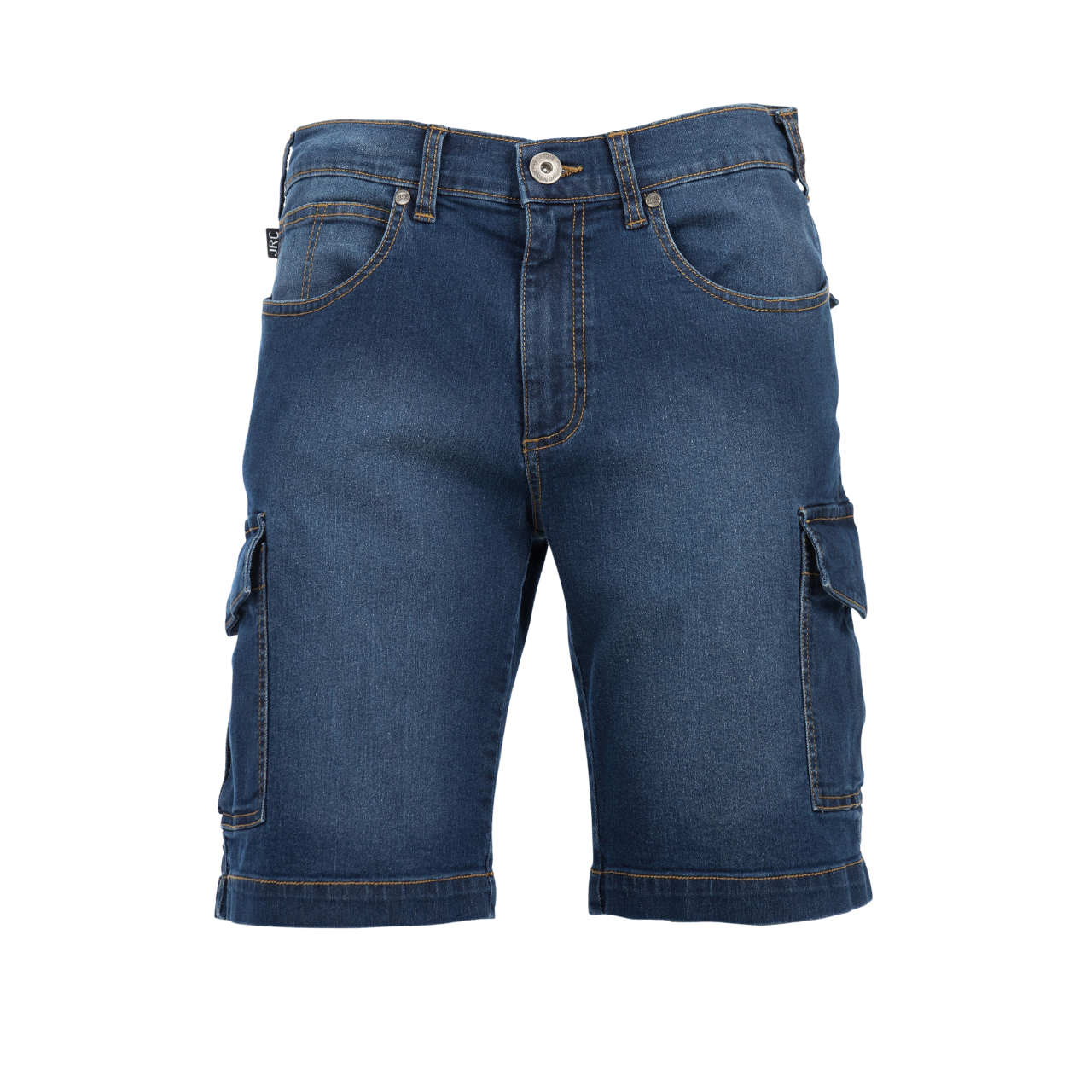 Pantalone corto multitasche in jeans elasticizzato 81% cotone 17% poliestere 2% elastan