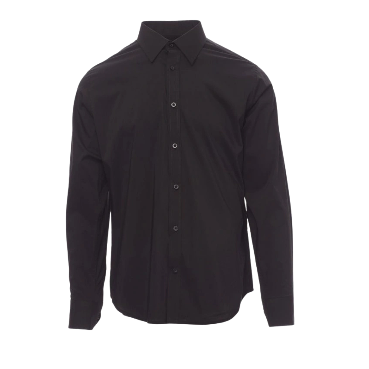 Camicia uomo dal titolo finissimo pettinato, vestibilità leggermente sfiancata, colletto modello italiano, polso sagomato a due bottoni e un’asola, cannoncino cucito a vista e bottoni in tinta; dietro: carré liscio, pinces di ripresa a metà schiena. Trattamento easy care del tessuto.