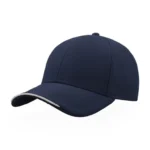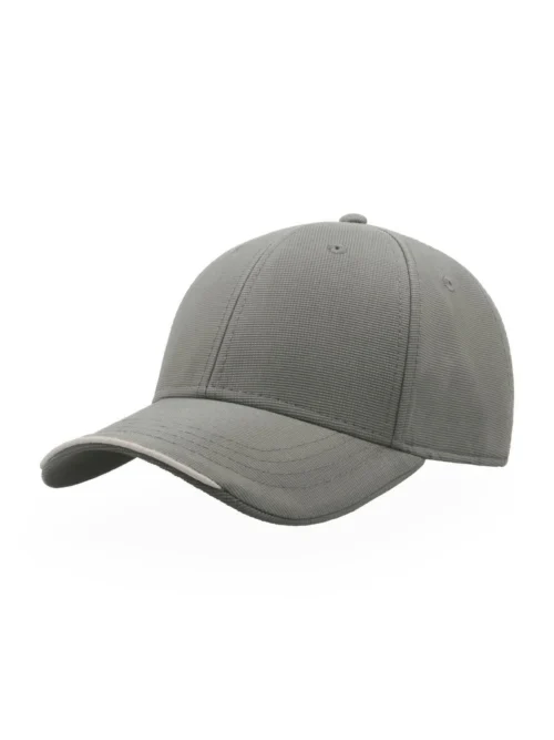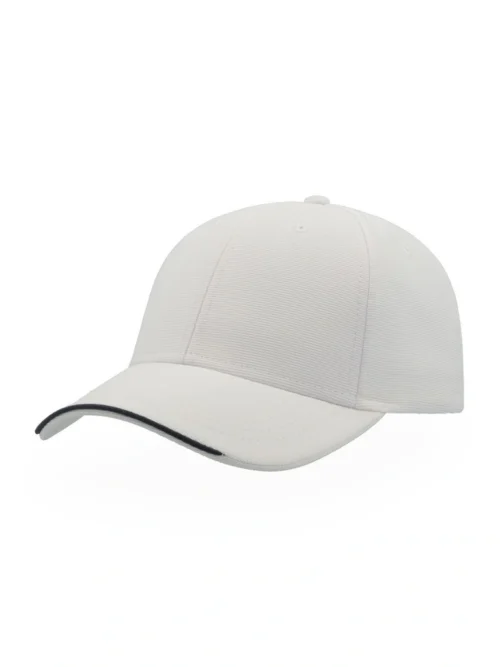 Classico berretto automobilistico rivisitato in jacquard di poliestere riciclato, 6 pannelli, bordino sulla visiera curva, forma strutturata con chiusura a strappo con foro in plastica, etichetta removibile.