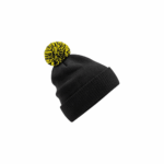 100% acrilico soft-touch. Cuffia in maglia a doppio strato con pompon, indossabile con o senza risvolto, taglia unica, disponibile anche in taglia junior. Etichetta removibile.