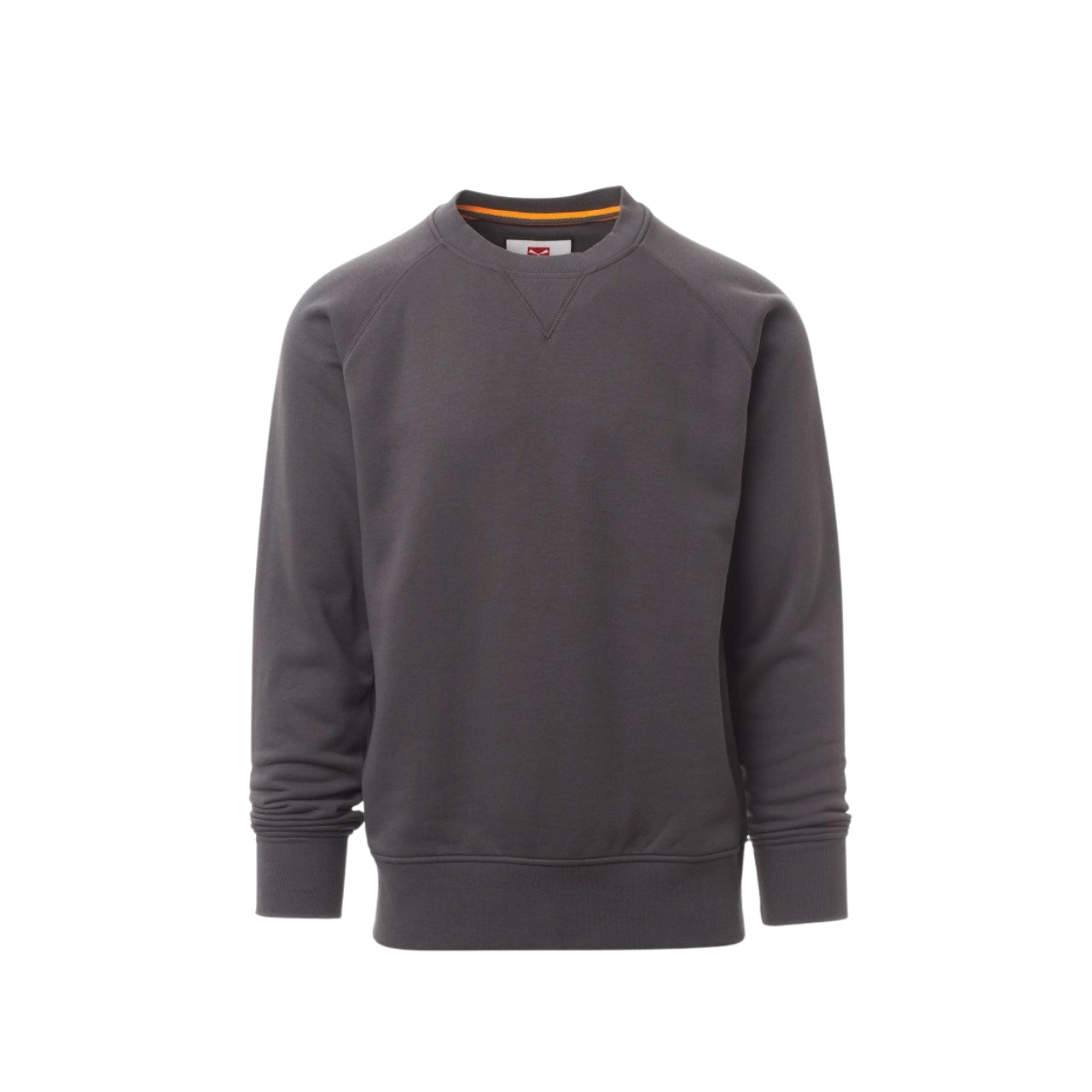 Felpa da uomo, girocollo, manica raglan, cucitura estetica a V al collo. Polsini e vita in costina elasticizzata, cuciture rinforzate.