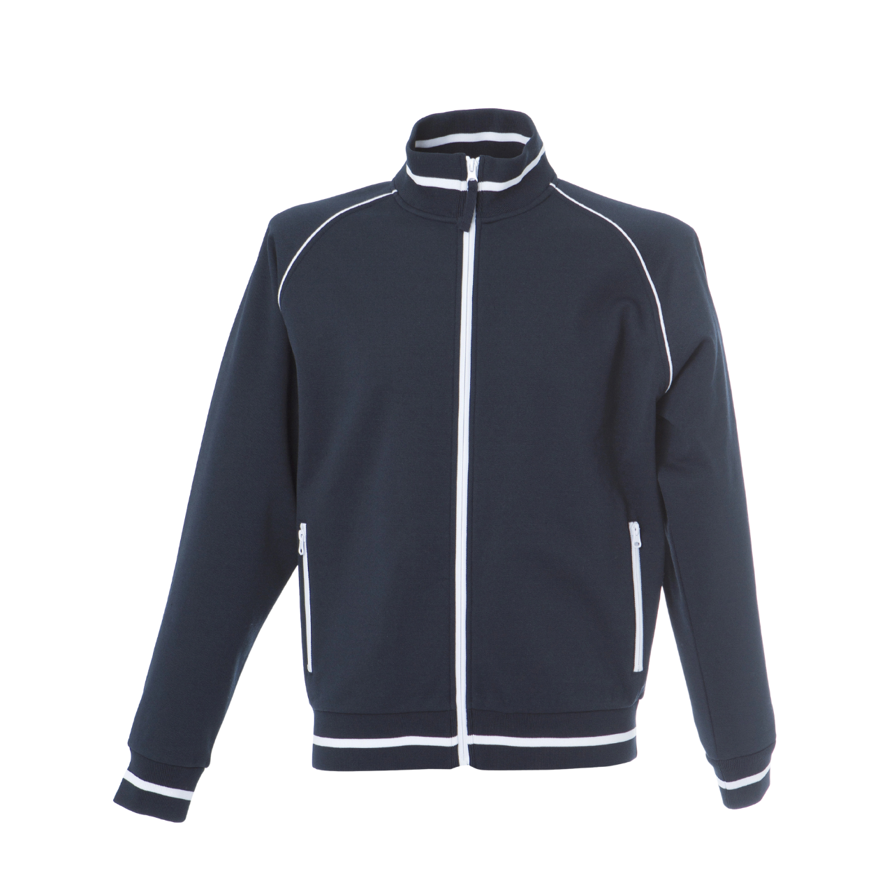 – Polsini e fondo maglia in costina elasticizzata con riga in contrasto