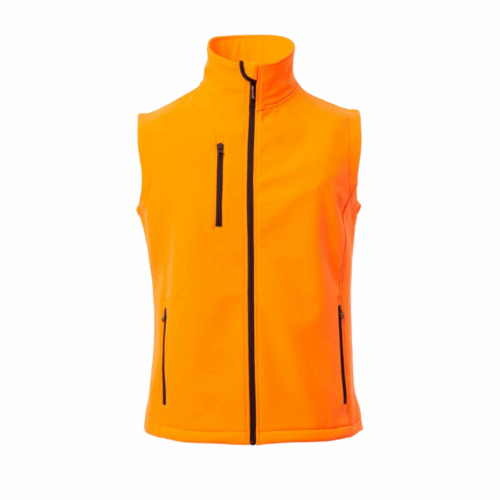 Gilet ergonomico a due strati e trattamento water repellent, con zip lunga, due tasche laterali con zip, una tasca al petto, coulisse in vita.