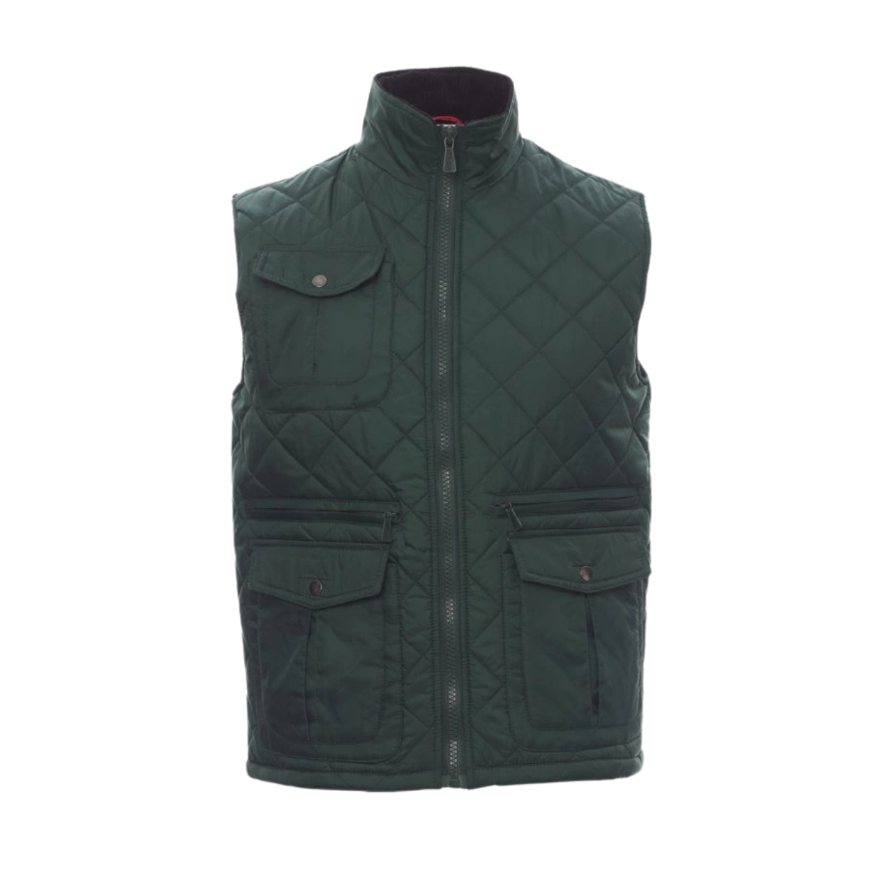Gilet trapuntato da uomo, zip 8mm in palstica con cursore in metallo, spacchetti laterali con bottone, cinque tasche esterne, di cui due LOCK SYSTEM. Interno: imbottito, colletto in rib di velluto, una tasca