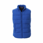 Gilet da uomo imbottito effetto piuma, zip in plastica coperta, due tasche esterne con zip coperte, interno in colore contrasto.