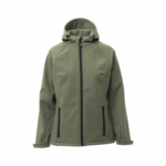 Soft-shell 3 strati, da donna, manica raglan, chiusura tramite zip SBS nastrata con cursore in metallo. Cappuccio sagomato con due cuciture e coulisse con stopper. Polsini elasticizzati, regolabili con stringipolso a strappo. Due tasche esterne con zip. WP 8000 mm H2O, WVT 5000 g/m² 24h.