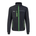 Felpa in tessuto polar di produzione sostenibile con rinforzi in materiale elasticizzato di contrasto sia sulle tasche che sull’avambraccio e il fondo lato interno.