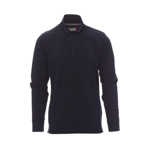 Polo da uomo a manica lunga con 3 bottoni in tinta effetto perlato, colletto e polsino a costine, spacchetti laterali, cuciture del collo coperte con nastro a contrasto, cuciture stretch, nastro di rinforzo laterale, rinforzo sagomato retro collo.