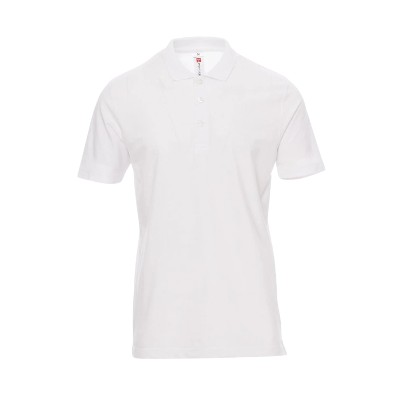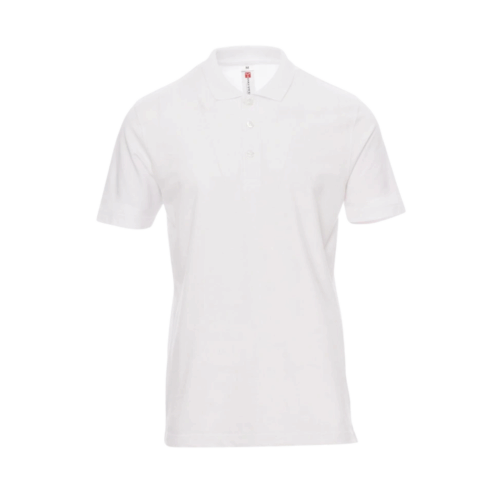Polo a manica corta con 3 bottoni in tinta effetto perlato, spacchetti laterali, cuciture del collo coperte con nastro in tinta.