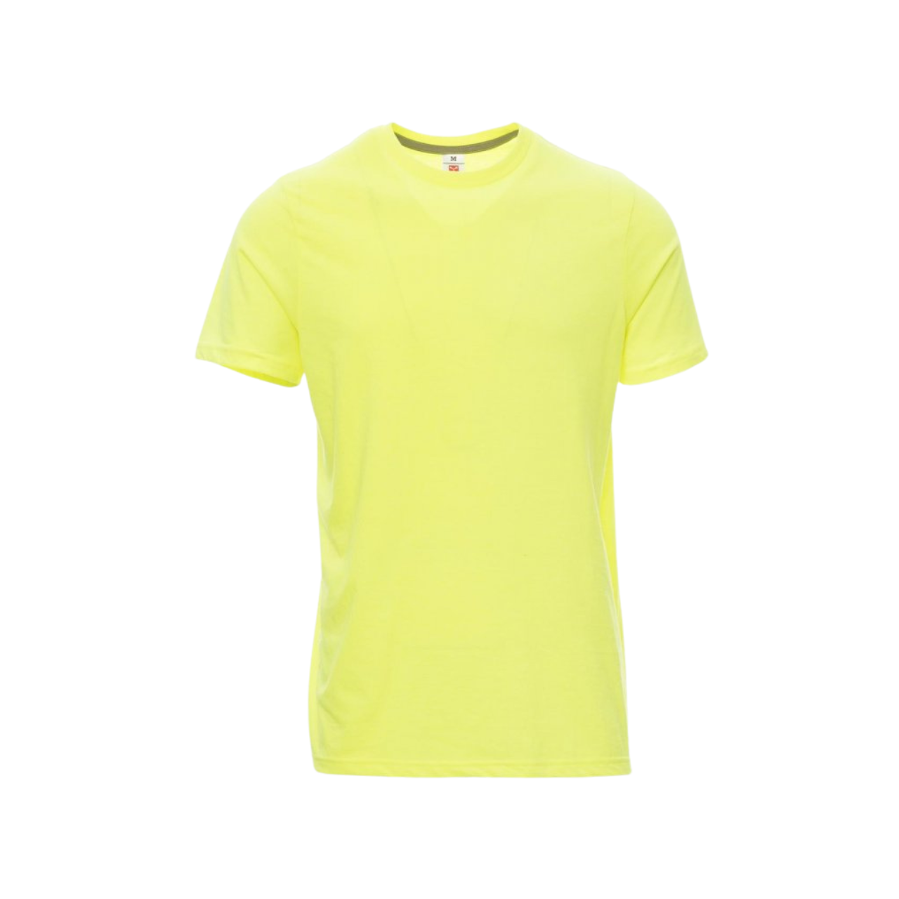 T-shirt da uomo girocollo manica corta, colletto in costina misto spandex da 1.5 cm con cucitura ribattuta sul davanti, nastro di rinforzo da spalla a spalla in colore a contrasto visibile nel colletto, cuciture stretch, struttura tubolare.