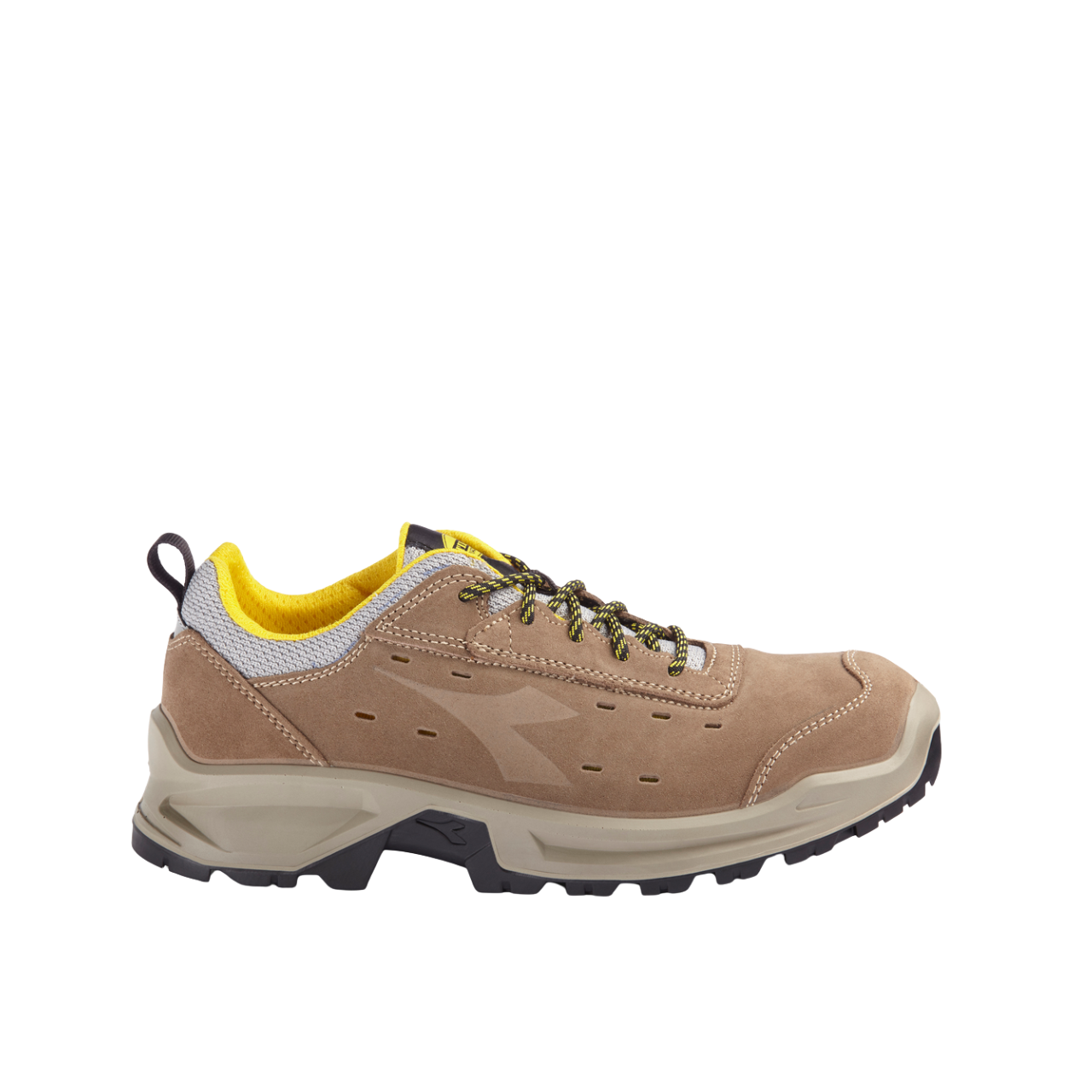 Calzatura di sicurezza bassa S1P in crosta scamosciata italiana forata.Caratteristiche principali: