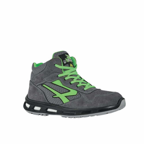 Scarpe antinfortunistiche alte, leggere e comode U-Power della linea Red Lion, con tomaia in Nylon ultra traspirante e morbida pelle scamosciata, puntale in alluminio, antiperforazione, antiscivolo e suola PU/PU, infinergy.