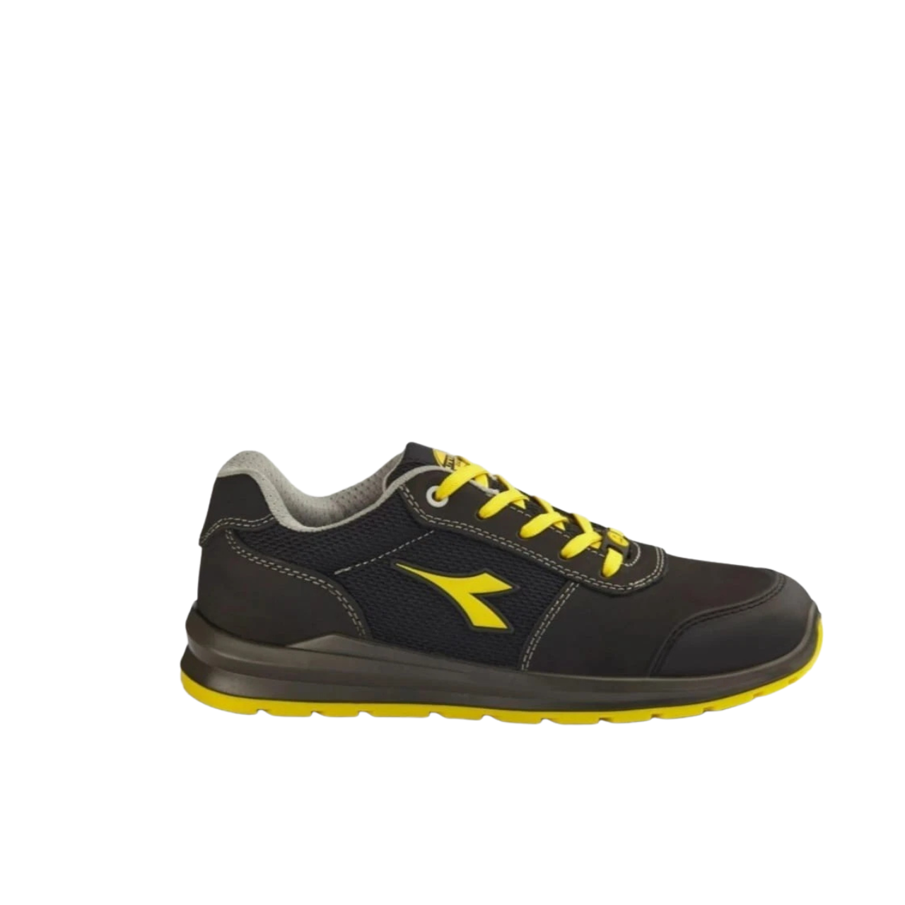 Calzatura di sicurezza bassa S3S idrorepellente in Action Nubuck, pelle bovina scamosciata rivestita da un film poliuretanico protettivo finitura Nubuck e Atom, tessuto poliestere con filati di rinforzo in poliuretano.