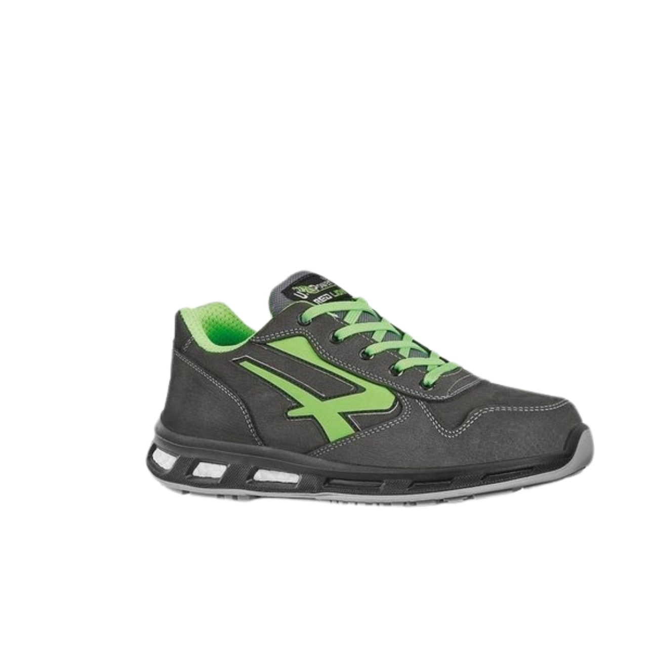 Scarpe antinfortunistiche basse, leggere e comode U-Power della linea Red Lion, con tomaia in pelle nabuk naturale bottalato, traspiranti, idrorepellente, puntale in alluminio, antiperforazione, antiscivolo e suola PU/PU