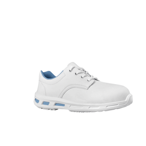 Scarpe antinfortunistiche totalmente “Metal free”, bianche basse, leggere e comode U-Power della linea Red Lion, con tomaia New safety dry, idrorepellente, traspirante, puntale composite, antiscivolo e suola PU/PU infinergy.
